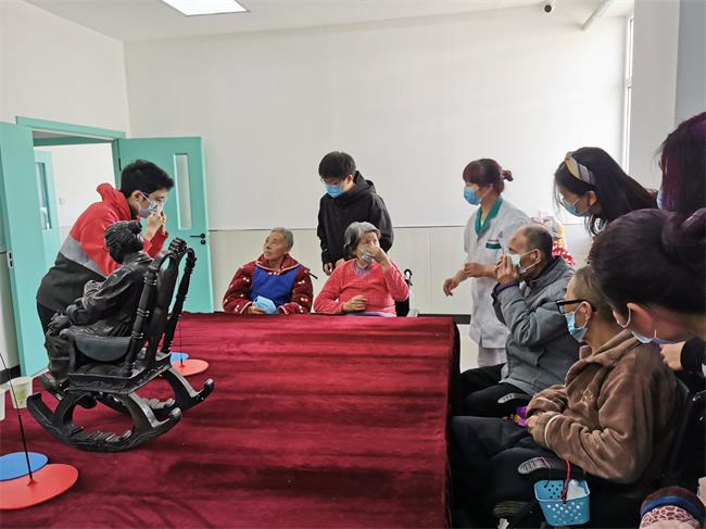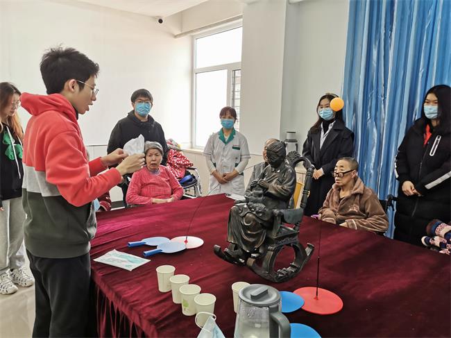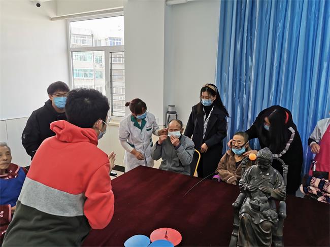 2021年3月4日上午,中国医科大学学生柳博臻、王梓煜、孙萌、尚千惠和郭奕含5名志愿者,来到辽阳市幸福爸妈西五道街养老院进行志愿服务,5名同学分别给爷爷奶奶们讲解演示了如何洗手消毒,正确戴口罩,心脑血管病预防,老年病防治等医学常识,深受老人好评。